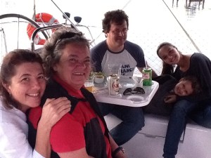 De volta ao clube, a Guta e o Arthur (esposa e filho do Marcello) chegam para uma happy a bordo. A Claudinha, que passava pelo trapiche, foi convidada a curtir conosco aquele por de sol a bordo.