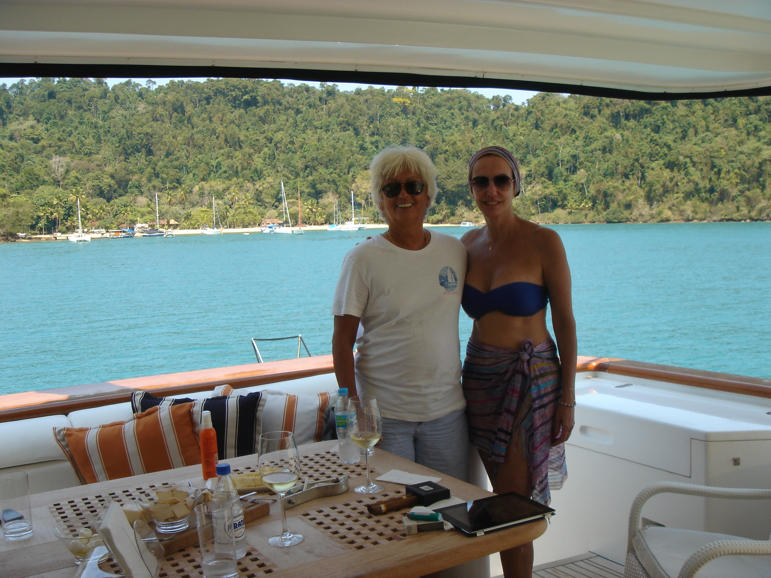 O barco é maravilhoso, mas não entendo muito bem o que leva uma pessoa a ter um barco daquele tamanho. Bem, cada um com seu cada qual, mas prefiro a nossa intimidade, sem necessidade de tripulação de apoio (no Phênix são em número de quatro, em dias normais).
