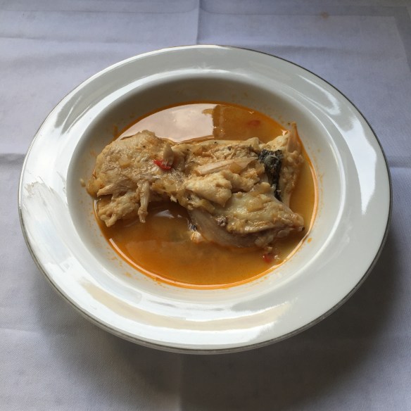 Reserve quatro postas de pijareva (ou garoupa). Refogue quatro cebolas médias picadas, um talo de alho poró e cinco dentes de alho em azeite de oliva, acrescente dois tomates maduros picados em cubos, um cubinho de caldo de galinha, uma colher das de sobremesa de sementes de coentro e uma de sementes de mostarda, uma colher das de sopa de molho shoyo, uma de molho de ostra e uma de molho de peixe, uma pimenta dedo de moça fatiada e sal a gosto. Deixe ferver até que os temperos todos desmanchem, adicionando pouca água sempre que necessário para não queimar no fundo da panela. Quando o molho estiver pronto, adicione as postas de peixe e água fervendo até cobri-las totalmente. Corrija o sal e deixe cozinhar por cerca de dez a quinze minutos. Acrescente salsa e cebolinha verde na hora de servir.