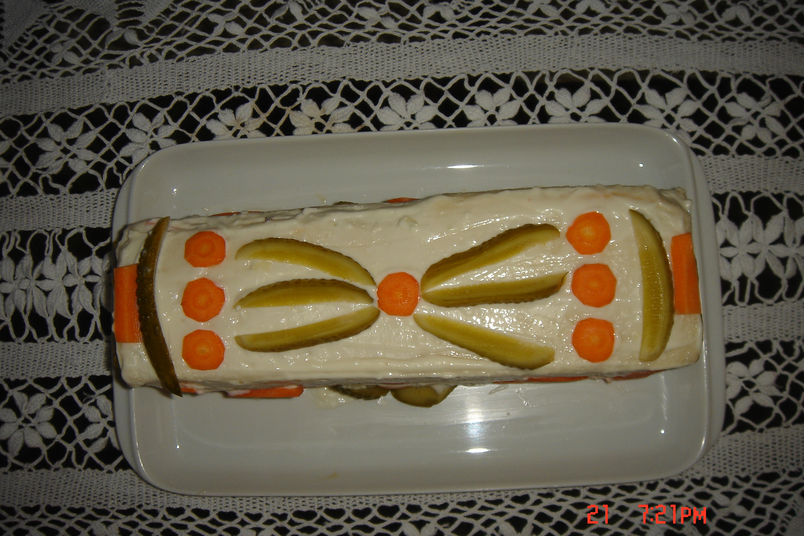 Cubra com creme de maionese e decore ao seu gosto.