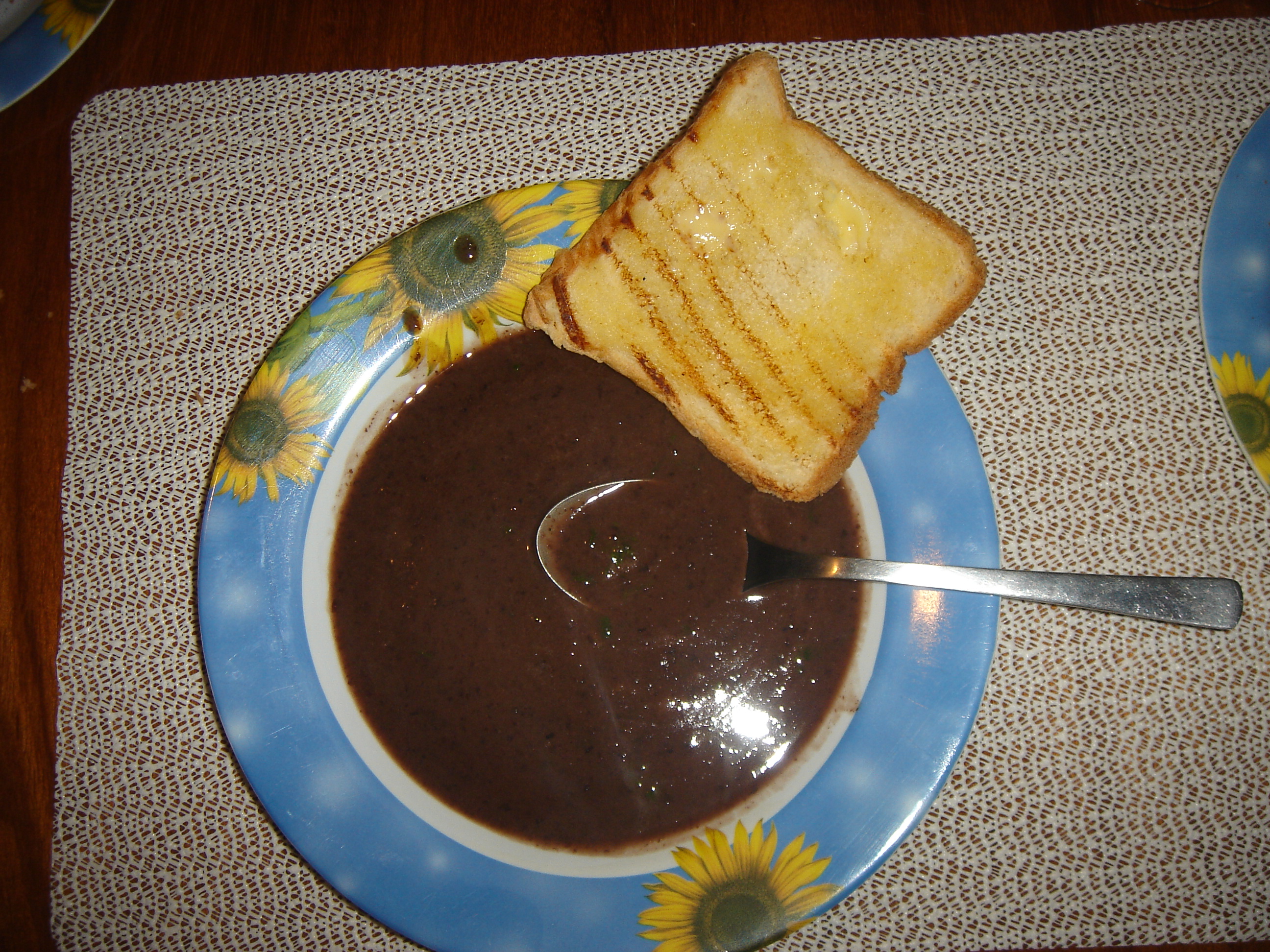 Pegue o feijão que sobrou do almoço e bata no liquidificador, adicionando água se for necessário. Passe por uma peneira para retirar os resíduos da casca. Coloque numa panela até ferver, corrija o sal, adicione salsa e cebolinha picadas, um fio de azeite de oliva e sirva com torradas.