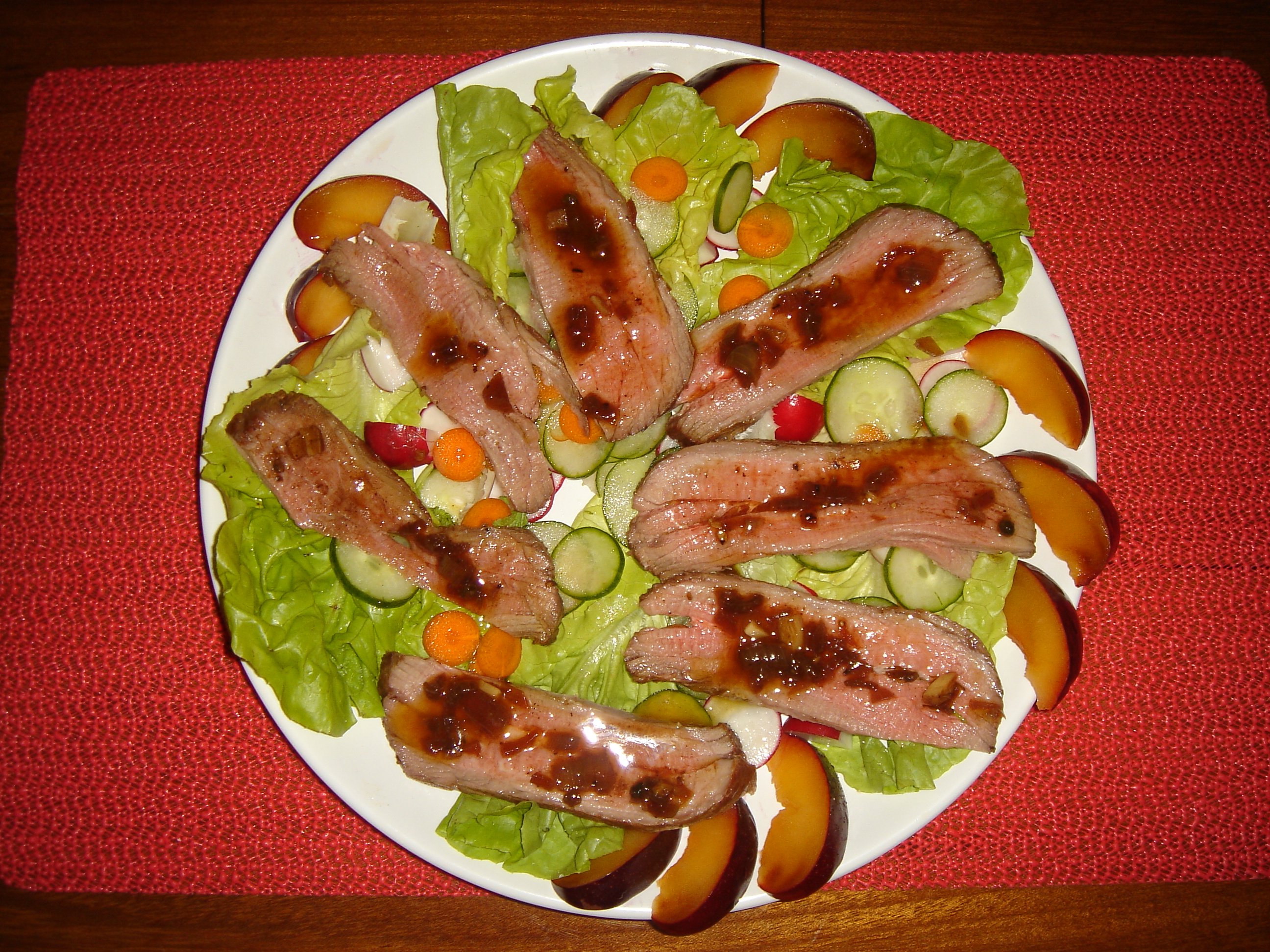 Tempere de véspera a paleta com sal, pimenta do reino, vinagre balsâmico, vinagre de framboesa (uma colher das de sopa de cada um), azeite de oliva e duas folhas de hortelã maceradas.
