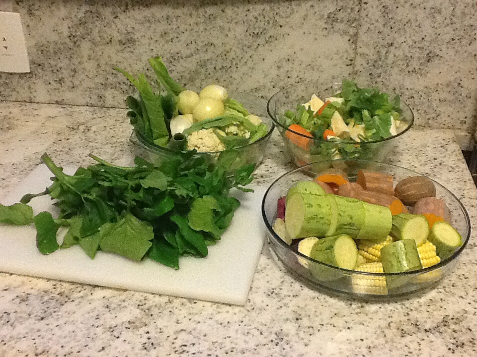 Pré preparo, enquanto as carnes cozinham.