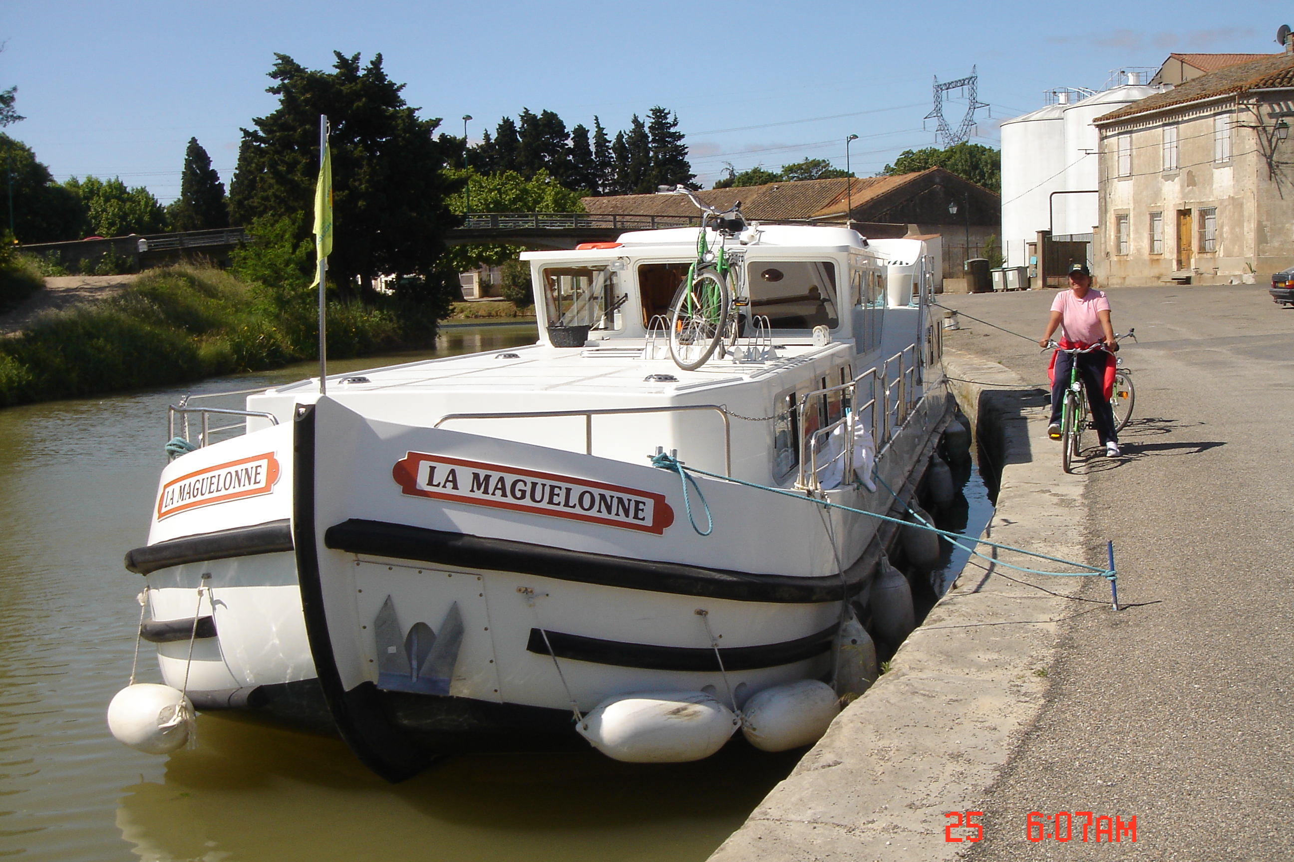 Em maio de 2006, fomos para a França navegar no Canal de Midi, com o mesmo grupo com o qual velejamos depois na Croácia: Paulo, Marcela, Dávila, Ângela, Marcello e Rosana.  Alugamos um barco (Le Manguelone) via Internet e embarcamos em Toulouse – na eclusa de nome Negra. O barco de fundo chato é como uma casa flutuante e tem quatro camarotes com banheiro privativo, um confortável salão central com uma boa cozinha, equipada com geladeira e freezer, e um cock-pit muito espaçoso. É equipado com dois comandos, um dentro e um fora.