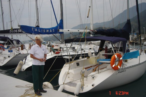 A Vivi diz para o Zanella que queremos fazer a regata de abertura, mas que não temos tripulantes. Ele diz que está a bordo com ele um casal de amigos, de Itajaí – Cláudio e Mônica – que não estão em nenhuma tripulação e que gostariam de participar da regata. Ele nos apresenta e a empatia é mútua. Combinamos que no dia seguinte iríamos dar uma velejada para eles conhecerem o Bubi.