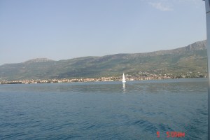 17/05 – Partimos de Milna, num novo dia lindo e de pouco vento (bora) soprando seis nós de NW, mas mesmo assim estamos velejando sem motor ligado. Ancoramos em Nekujan, tomamos banho de mar e almoçamos o “sobrê-dontê”. Voltamos a velejar, agora com vento de 20 nós, de través, com velocidade do barco de 12 nós, em direção à Split, aonde chegamos perto das dezoito horas. Fomos direto a um Posto de abastecimento, que dá frente para uma das ruas da cidade e os fundos direto para o mar, para completar o diesel do tanque de combustível, depois ancoramos numa marina próxima, tomamos um bom banho, e fomos conhecer a cidade de Split (cidade velha, como é chamada). Fizemos uma boa caminhada até chegar à cidade, já anoitecendo.