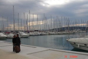 05/05 – Em Split, já na marina Kostela, a turma toda se reencontrou, por volta das doze horas. Não pudemos embarcar de imediato, porque eles estavam lavando o barco. Aproveitamos para conhecer a marina, que é imensa, almoçamos no restaurante local, recolhemos cem euros de cada um e eu e Ângela fomos ao supermercado providenciar a compra dos mantimentos – não é fácil fazer compra na Croácia, porque é impossível ler os rótulos; algumas coisas são evidentes e algumas embalagens são iguais as nossas, Nescafé, por exemplo, é escrito da mesma forma, mas para outros produtos Ângela e eu tivemos que usar nossa intuição, que nem sempre funcionou, como contarei a seguir.