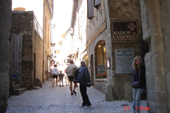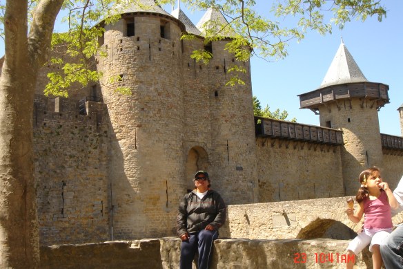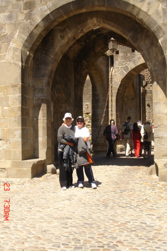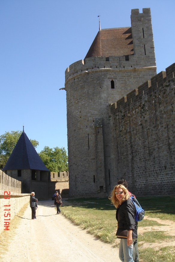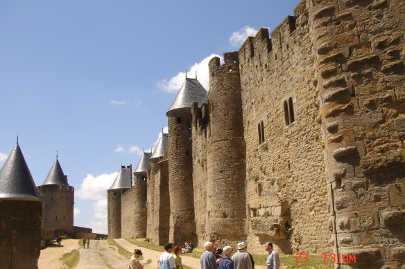 No dia seguinte caminhamos até Carcassone. Uma cidade murada, medieval, linda e histórica. É nesta cidade que tem origem uma famosa comida francesa –Cassoulet – feijão branco cozido com pato e linguiça – dos tempos em que a cidade ficou isolada entre suas muralhas em função da guerra dos cem anos; eles cultivavam o feijão, criavam patos e porcos e com isso sobreviviam. É uma comida interessante, pela qual a Vivi e o Marcello ficaram apaixonados.