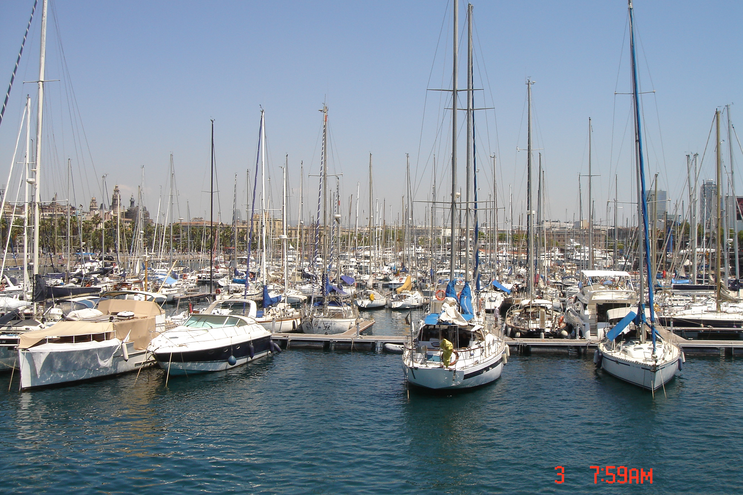 Permanecemos uma semana em Barcelona, cidade mágica. O Porto Velho é lindo, repleto de veleiros entrando e saindo na barra. Equívoco ter saído do Brasil com o hotel e o carro já pagos para toda a semana, pois poderíamos ter passado aqueles dias a bordo de um veleiro alugado, que lá estão à disposição aos montes.