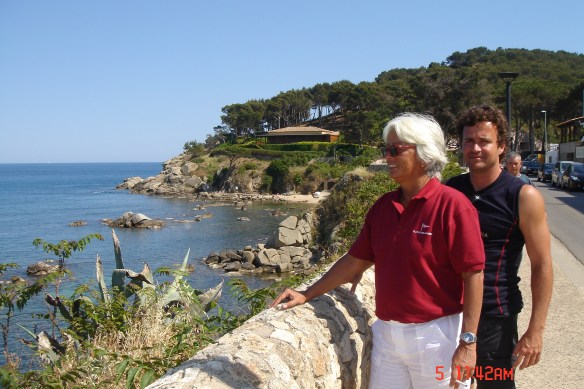 12/05 – Tomamos café e fomos passear pela ilha. Cada dupla tomou o seu rumo. O visual é encantador, parece que estamos na idade média, apesar de a ilha contar com alguns automóveis, trazidos de barcas para ali. Eu e Vivi estamos tomando um chope num bar perto do píer, quando o Marcello e o Dávila chegam empolgados, porque, finalmente, haviam conseguido comprar um pernil suíno verdadeiro. Retornamos ao barco e preparo o nosso jantar: polenta com frango ensopado e coloco o pernil em tempero para assá-lo amanhã.  Já são mais de vinte horas e agora é que o sol começa a se por. O jantar foi de cinema, regado a Brunello de Montaltino.
