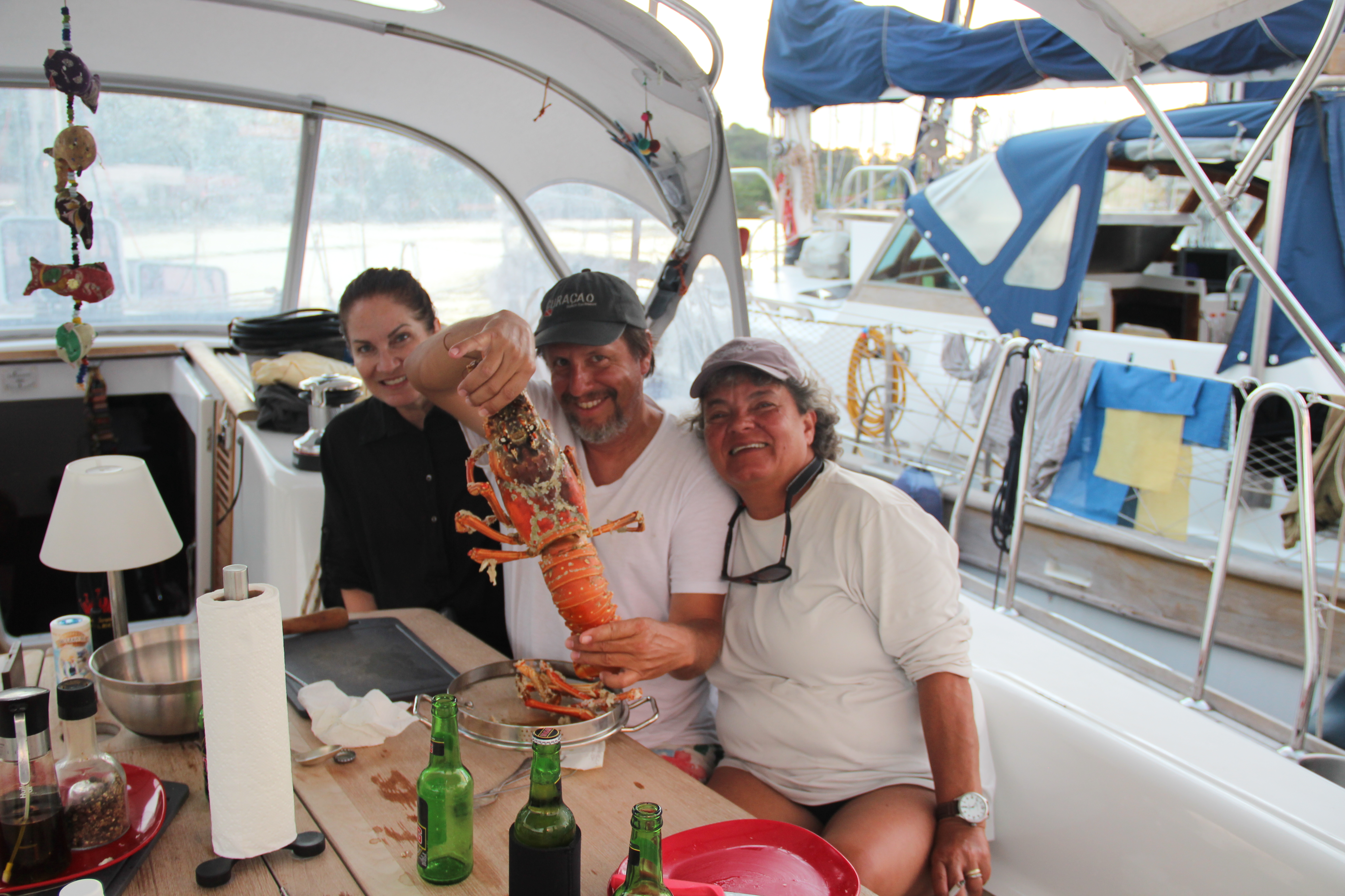 Logo que atracamos vieram nos oferecer lagostas e caranguejo. Claro que compramos e nos deliciamos. Provei, ainda, ova crua de lagosta (indescritivelmente deliciosa) e caramujo de concha gigante cru, oferecidos pelo pescador que nos vendeu as lagostas.