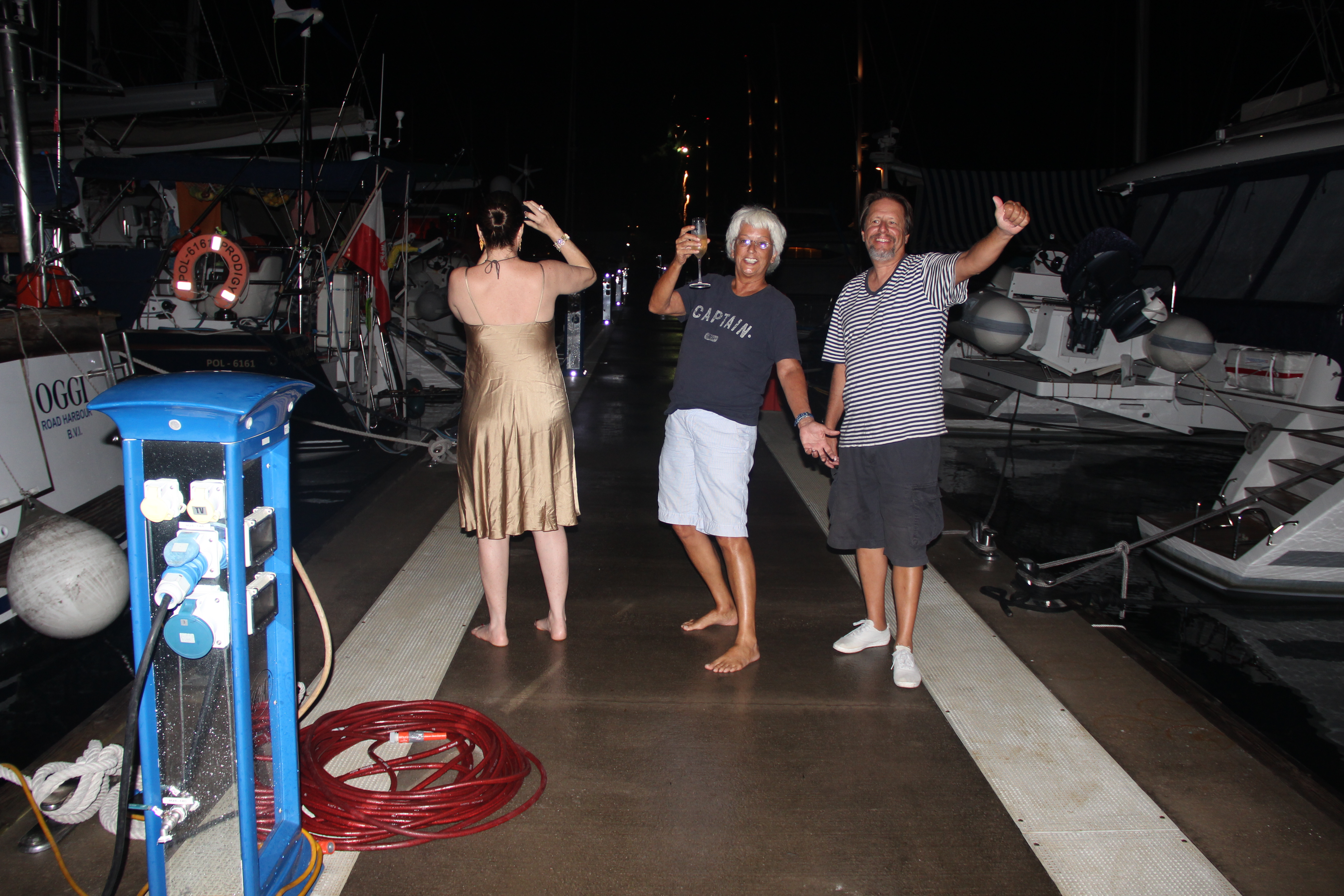 Álvaro e Graziella acordam depois das 16 horas, na maior ressaca. Perguntamos sobre a festa e estes dizem que estava mais ou menos – espumante à temperatura ambiente e cerveja quente também; nenhum tripulante dos barcos aqui ancorados (que são muitos, os trapiches estão lotados) foi à festa da marina, todos ficaram em seus próprios barcos, tinha uma multidão, mas de habitantes locais.
