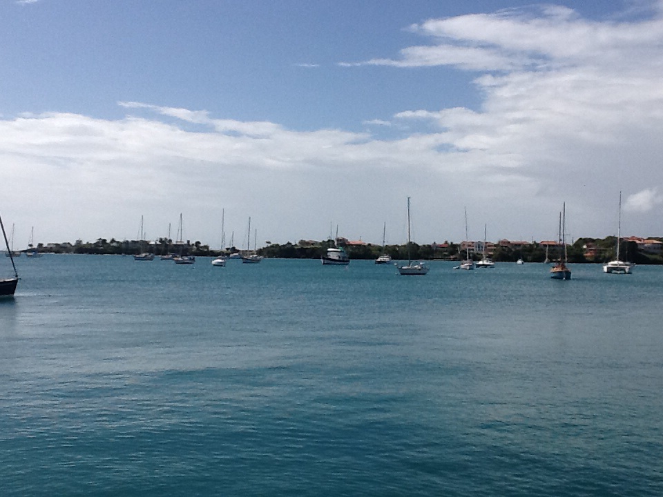 Estamos tomando café da manhã no restaurante da marina, quando Álvaro chega e nos fala que ele e Grazziella conversaram e propõem voltarmos para Pricklys Bay, onde poderemos ficar na âncora, em águas transparentes e limpas.