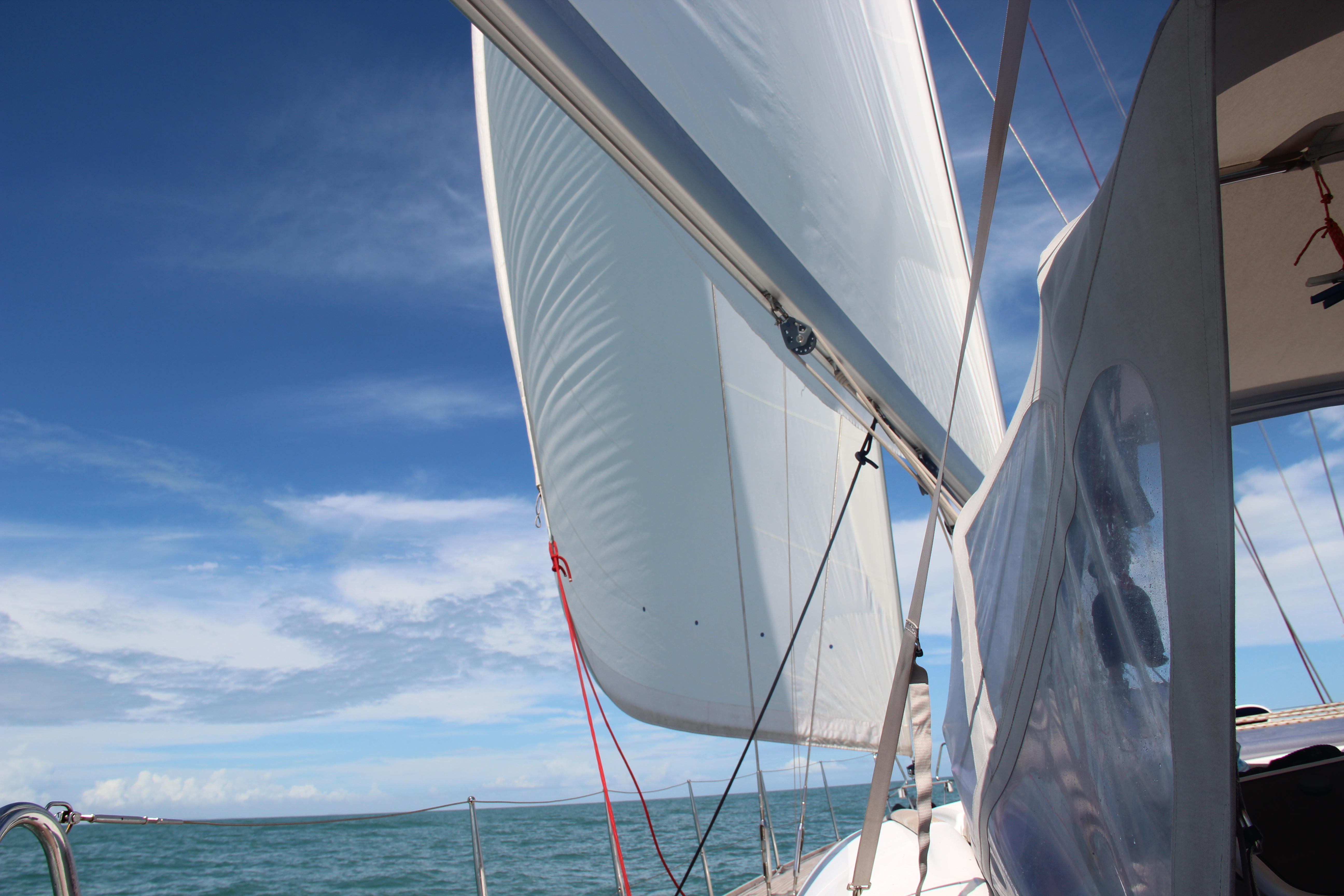 Quando retornamos para o nosso turno de 4 horas da manhã, a genoa está toda aberta novamente, porque o vento caíra para 16 nós. A vela grande era mantida rizada, especialmente nos turnos noturnos, porque modificar o tamanho do pano era mais complicado, com necessidade de aproar no vento para enrolar ou desenrolar dentro do mastro.