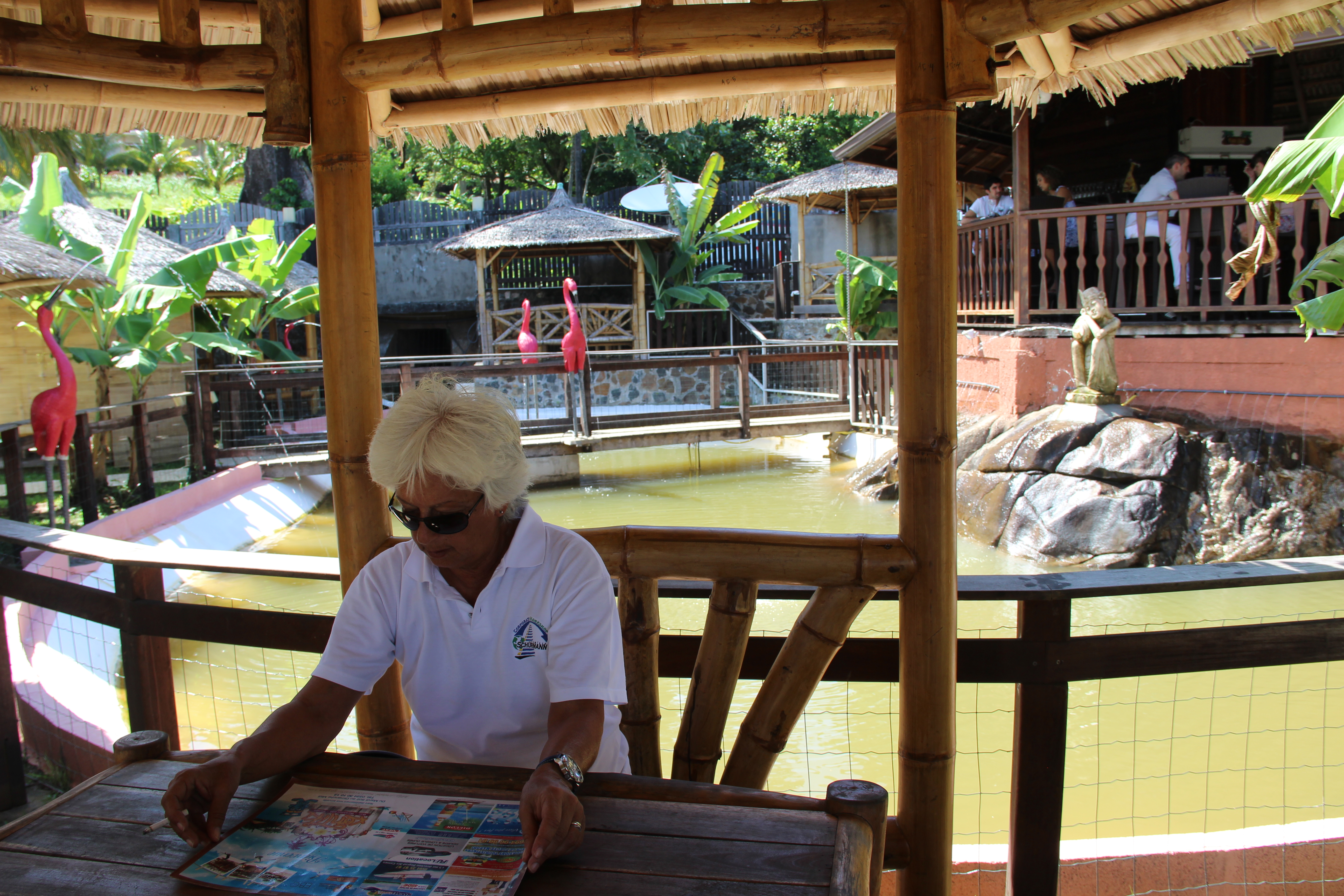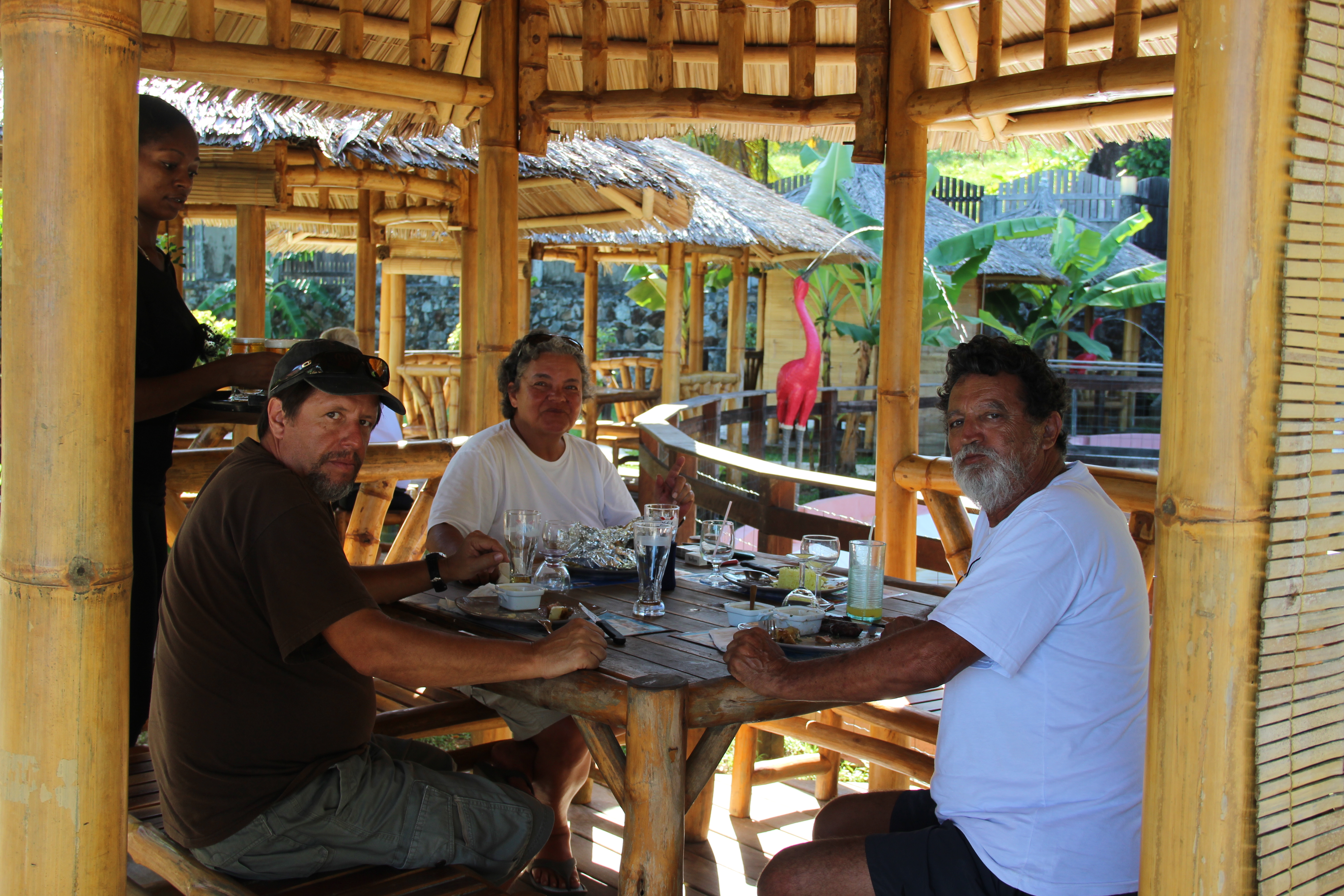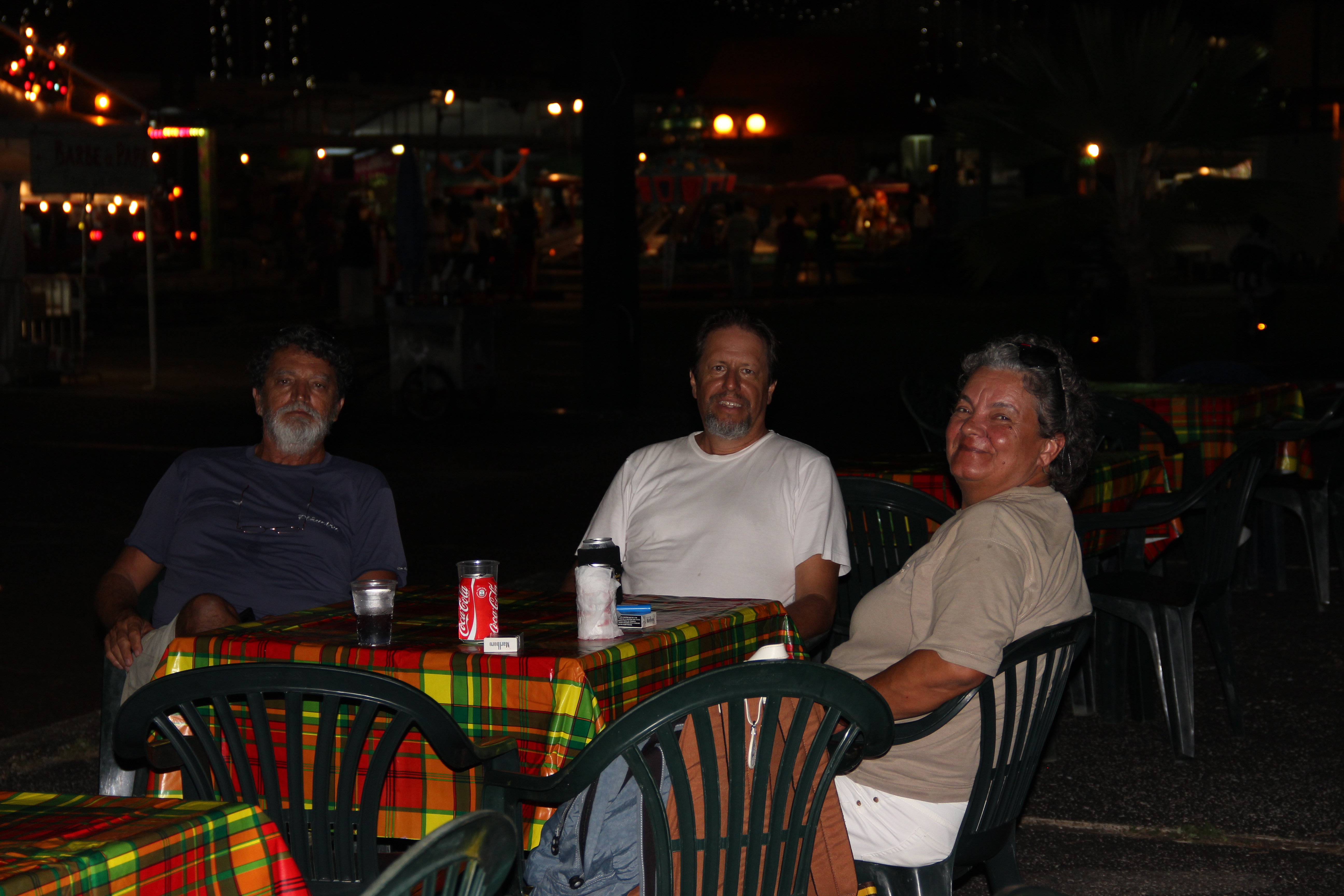 Já de carro, vamos até a Imigração para regularizar a entrada do veleiro no país, mas as portas estão fechadas e não há ninguém à vista, então, voltamos ao barco para pegar nossas roupas e levar a uma lavanderia. Depois, fomos à busca de um restaurante para almoçar e escolhemos um chinês – comemos um Pato Laqueado maravilhoso, como aqueles que vemos em programas de culinária chinesa. Depois do almoço fomos passear de carro e conhecer os arredores, bebemos cerveja na beira da praia, mas o calor correu conosco e acabamos num bar dentro da cidade com acesso à Internet, para a felicidade do Álvaro. Ao entardecer Dávila nos levou para conhecer uma Boulangerier onde a Vivi comeu duas bombas de baunilha verdadeiramente francesas. Ela ficou estupefata com o sabor dessa guloseima. Aproveitamos para comprar baguetes francesas, também maravilhosas.