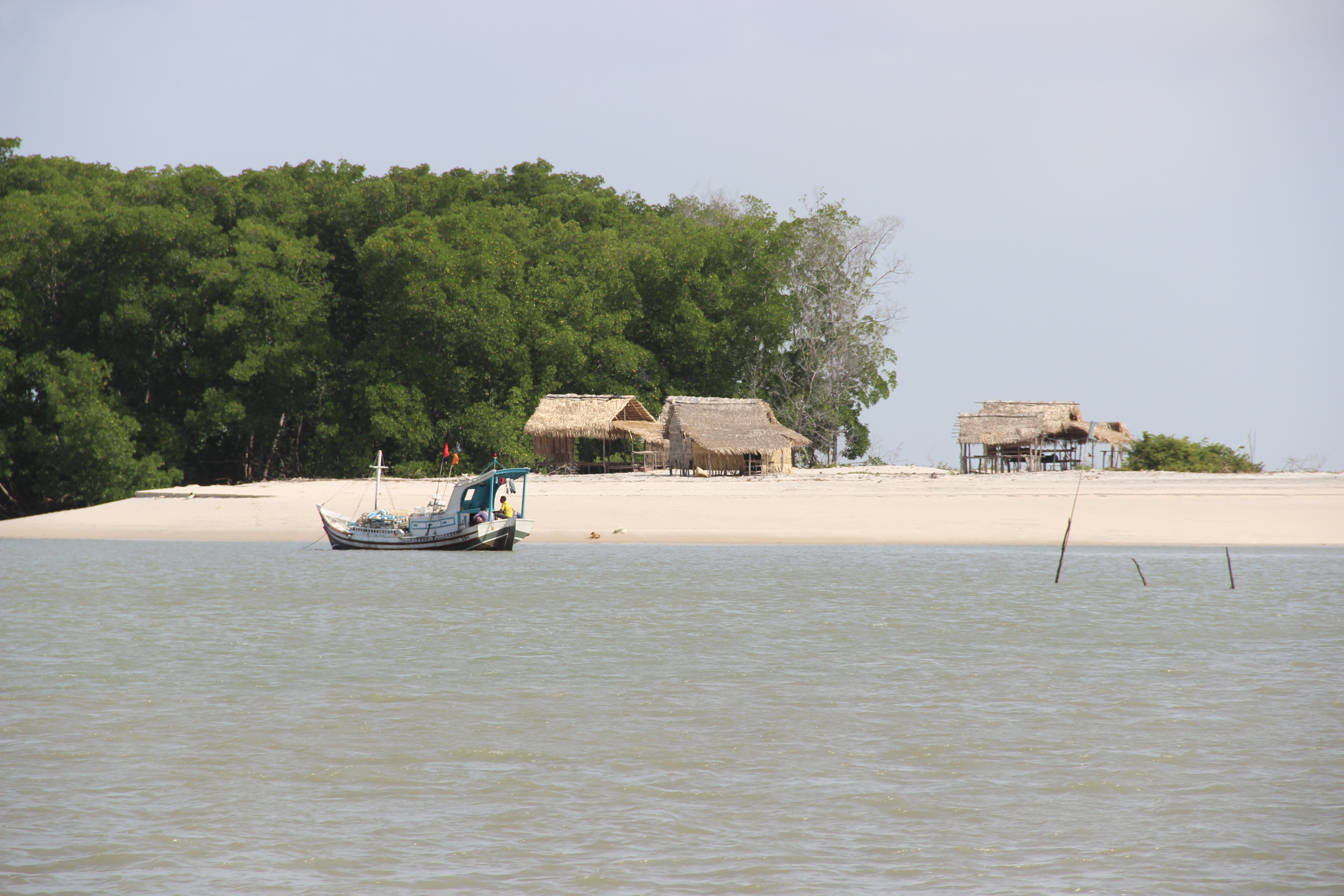 Marcamos um way point no GPS, próximo à Ilha de Lençóis, na costa do Maranhão. Dizem que a entrada de mar ali não é tão simples, mas o nosso velho lobo do mar (Dávila) diz que não tem nada de complicado, é só estar atento. Queremos conhecer a região e são 13 horas quando atingimos o ponto marcado na carta e 14 horas quando largamos a âncora. Ao nosso redor podemos observar vários baixios, com água muito rasa mesmo, mas entramos certinho no canal.
