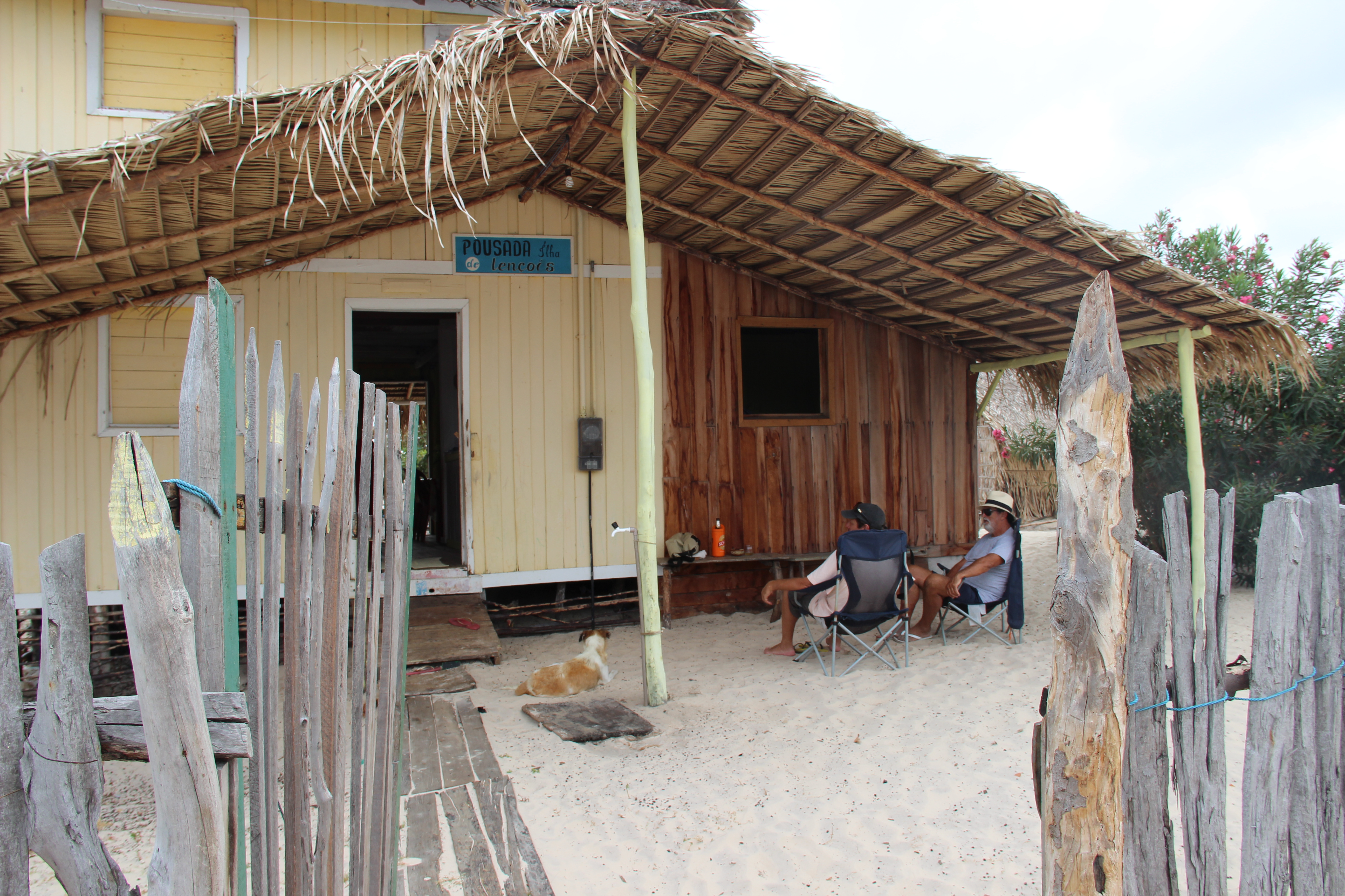 Mas precisamos comer e nos falam que a Pousada, distante uns 300 metros dali, poderia nos atender. E lá fomos nós, comer peixinho frito, pirão (feito pela Vivi, porque eles não sabiam o que é pirão ou como é feito), arroz e salada de tomate e cebola.