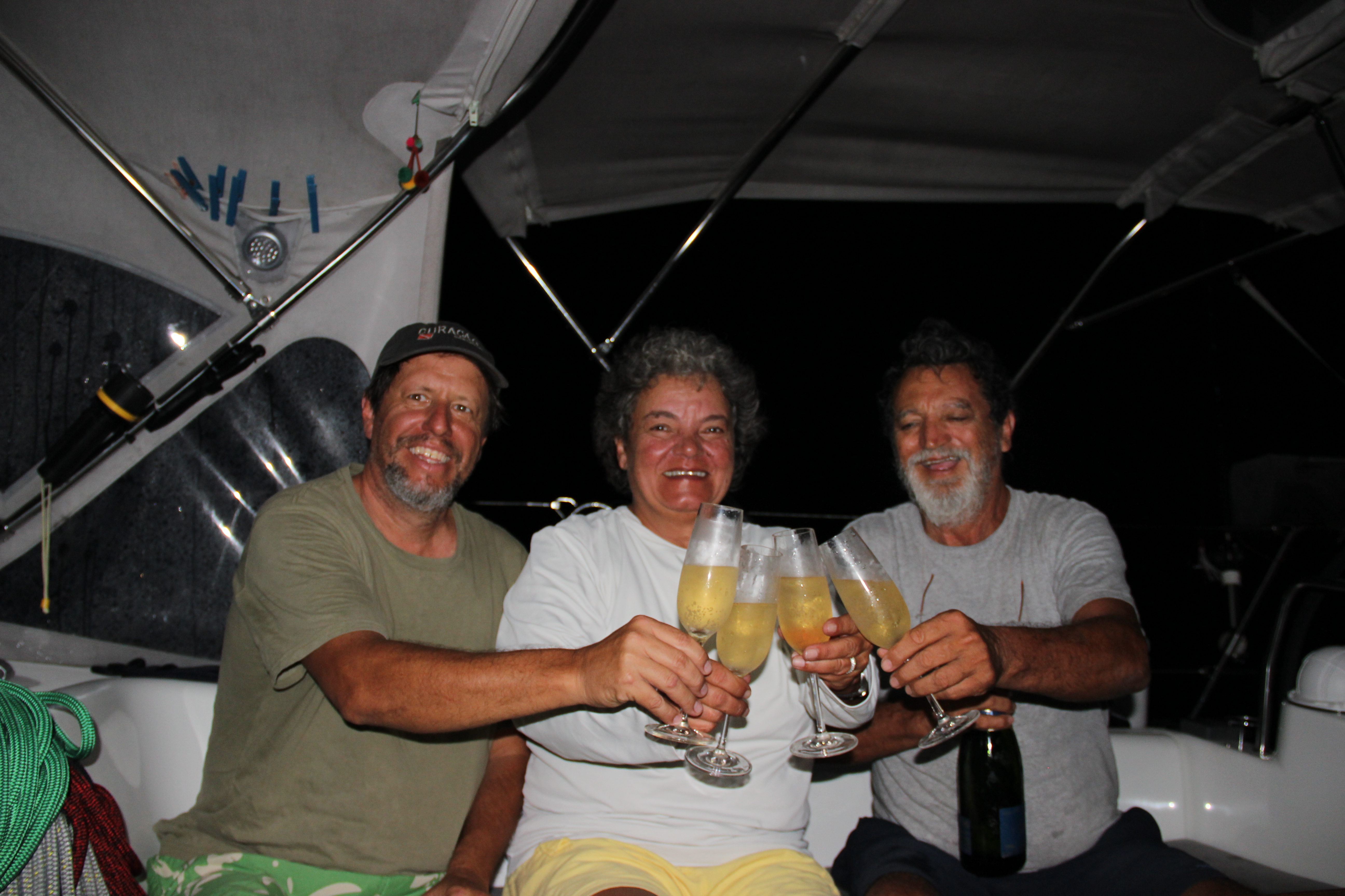Nessa noite, pelos nossos cálculos, alcançaremos a latitude zero e, por isso, colocamos um espumante para gelar, porque não se cruza essa linha sem comemorar. É o marco entre o Atlântico Norte e o Atlântico Sul. Uau! Isso não é para qualquer um, mas para poucos velejadores, considerando a totalidade desses no mundo.