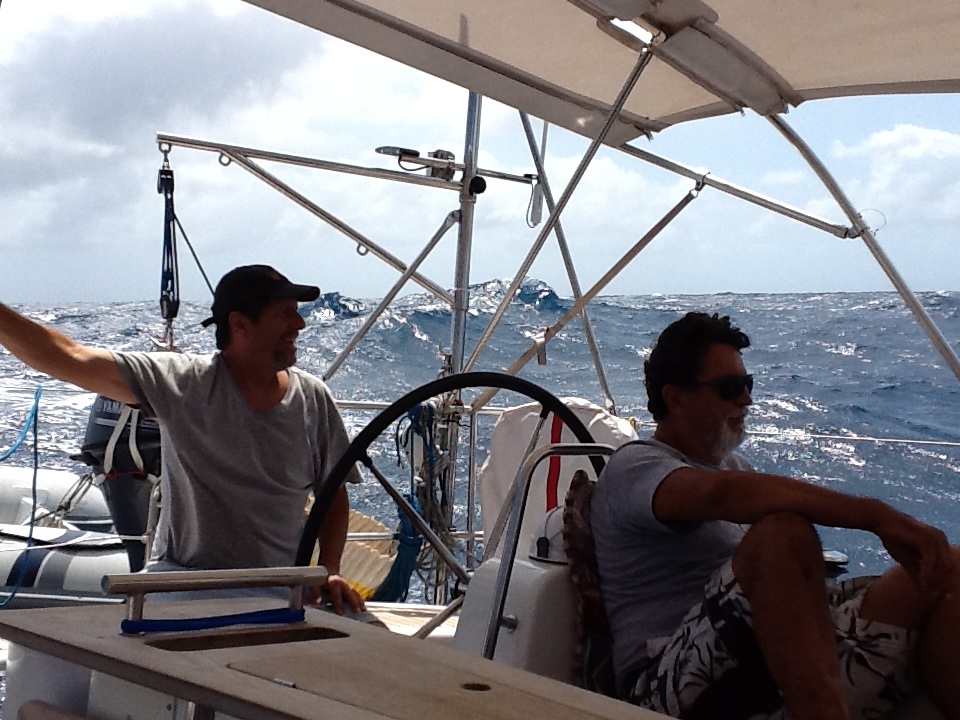 O vento e as ondas entravam de través, quase de popa, fazendo o veleiro chacoalhar em todos os sentidos, especialmente pendulando de boreste para bombordo, boreste outra vez e, assim, sucessivamente. Frequentemente a proa enterrava no mar desorganizado e espirrava água até a altura do dog house.