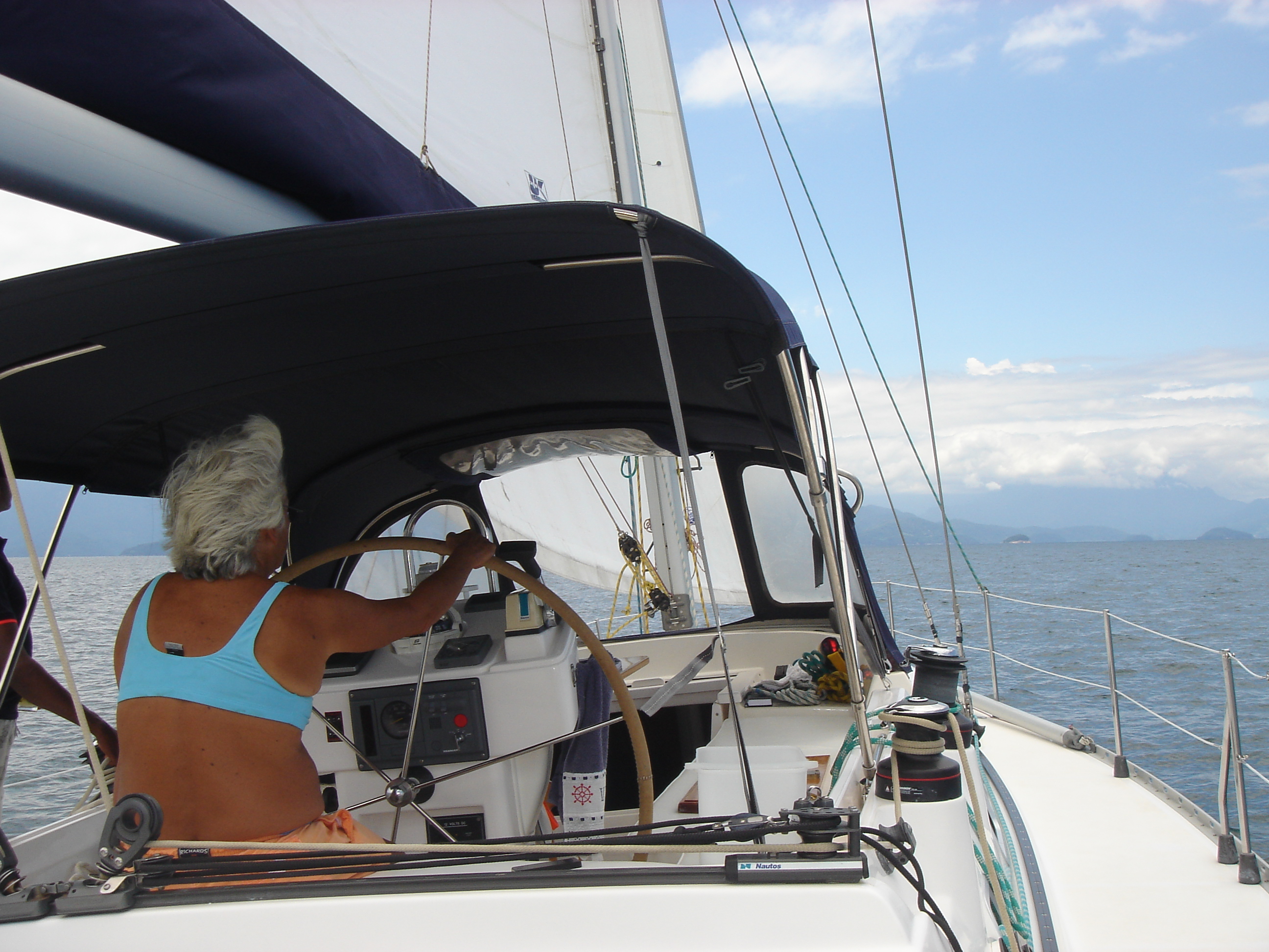 Todas as programações de velejar essa semana, outra vez, furaram, porque tem chovido todos os dias. Então, ficamos brincando de casinha. Esta semana fiz bacalhau num dia, feijoada no outro, frango ensopado (a Roberta e o Vitório – veleiro Mare Mio – jantaram conosco nesse dia). Assim os dias rolam, sem que se perceba, sem que se sinta monotonia, sem tristezas, enfim, sempre bons dias.