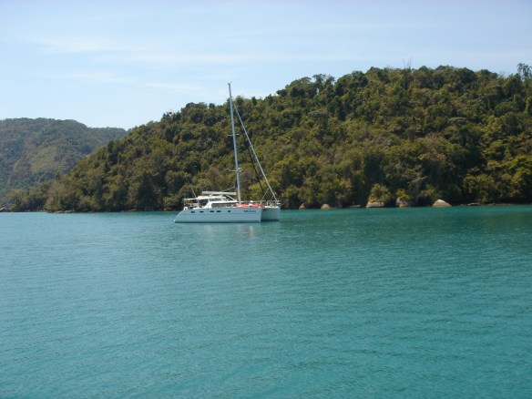 No feriadão de finados recebemos a visita do casal de amigos Paulo Motta e Marcela. Choveu durante todos aqueles dias, muito. De qualquer forma, curtimos muito a bordo, fizemos comidinha, levamos eles para conhecerem Paraty e no sábado, com chuva e tudo, fomos para a ilha da Cotia. Não podíamos deixar de dar uma navegada com eles.