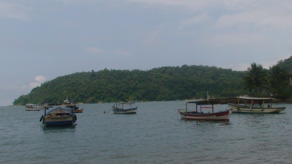 Ricardo e Neila passam de bote inflável informando que vão dar volta à ilha. Ficamos tentadas de navegar junto com o nosso botinho, mas não podemos, porque tenho que cuidar do feijão que está no fogo. Entre um banho de mar e outro, uma mexida no feijão, para que ele não queime.