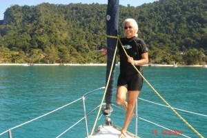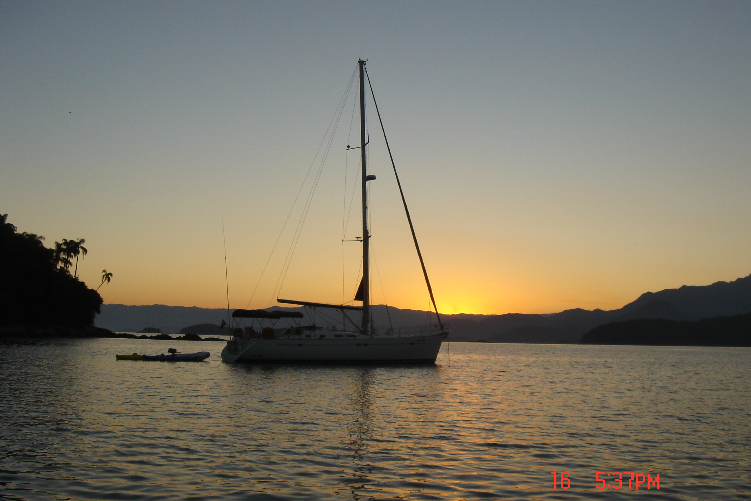 Sempre que dá um dia apropriado (o que tem sido raro em Florianópolis) temos saído para navegar ou, às vezes, só embarcamos e ficamos a bordo curtindo a nossa casinha flutuante que está direto em Jurerê, em nossa poita situada em frente ao iate clube. A Vivi continua trabalhando durante a semana no período da manhã, de forma que só podemos usufruir das nossas tardes, ou nos fins-de-semana.