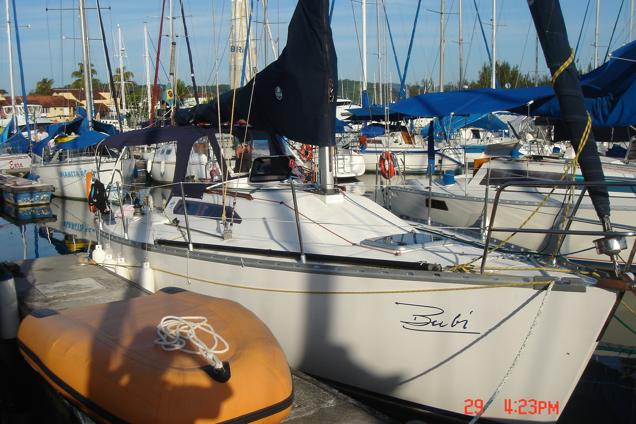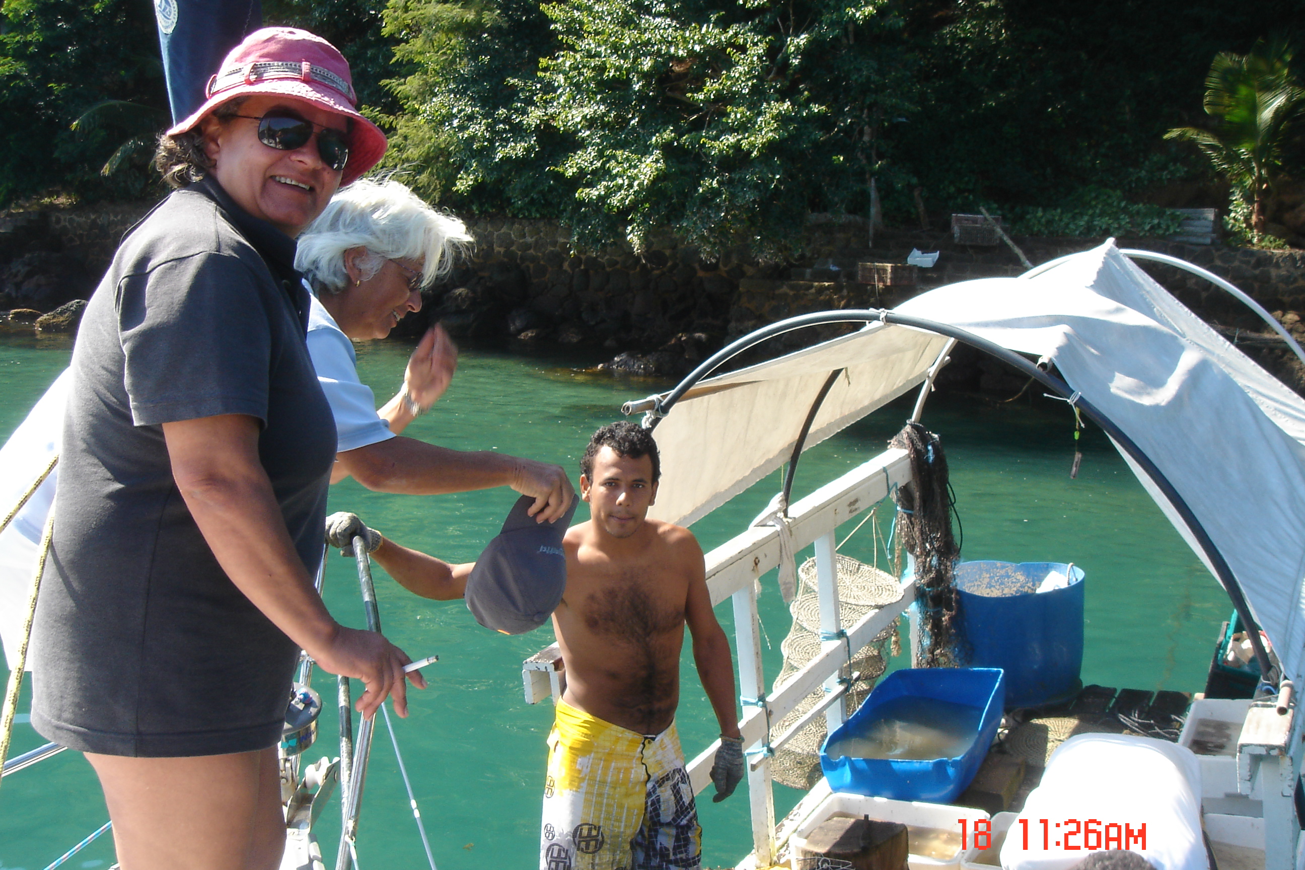 Já a levamos para passear conosco no Bubi novo, mas dá pena. A pobrezinha está completamente insegura até para caminhar no convés com o barco parado. Não consegue entrar ou sair do cock-pit sem ajuda. Pareceu-nos que ela curtiu o passeio, mas no final do dia vomitou, quando ainda embarcada, e ficou indisposta. Então, desistimos.
