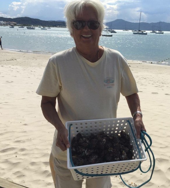 Em Ganchos, Gusmão e Carla foram de bote até um criadouro de mariscos e compraram uma “corda” que foi debulhada , os mariscos limpos e saboreados no balancê do Bubi.