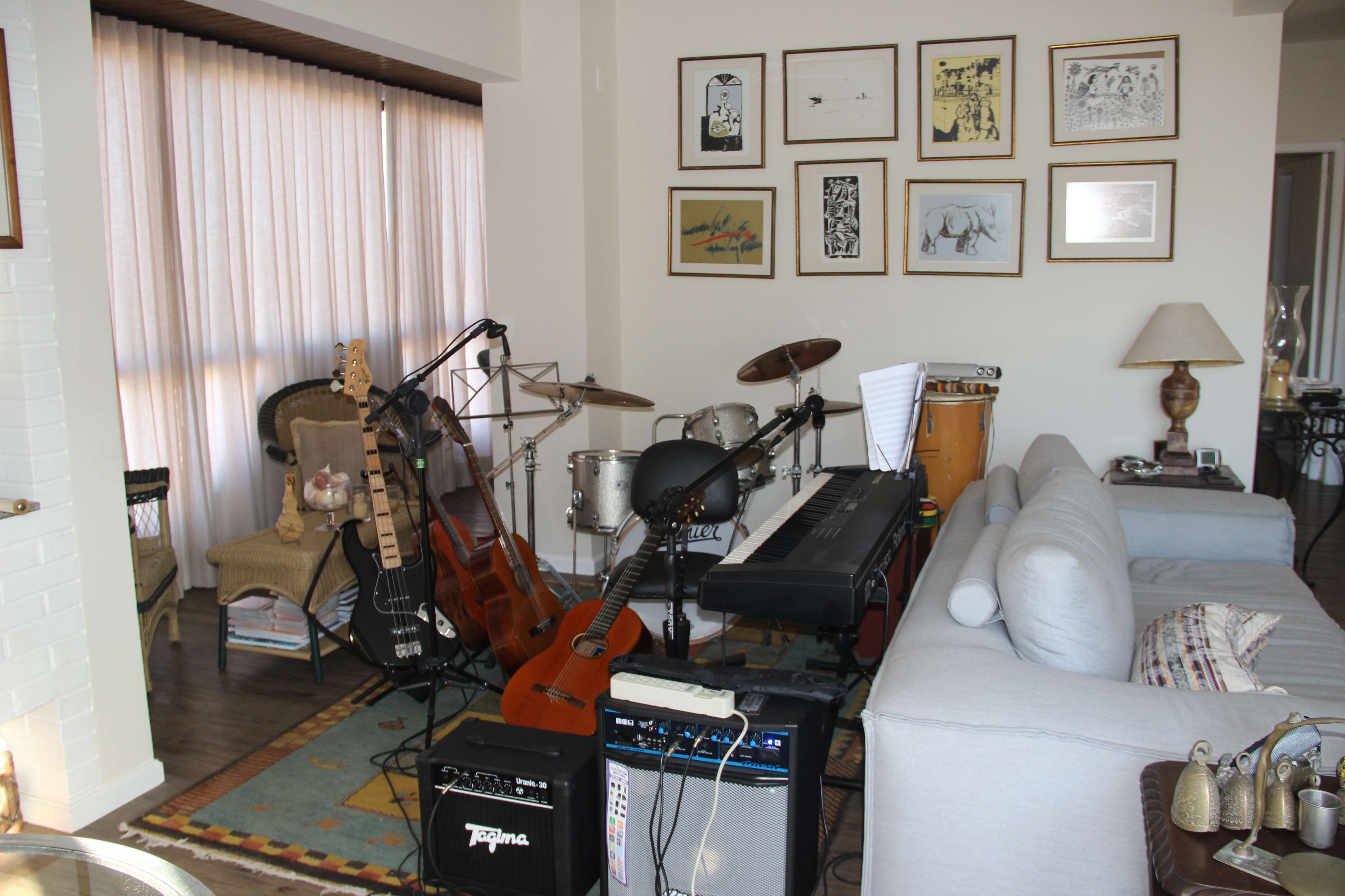 Uma parte da nossa sala transformada em estúdio de música