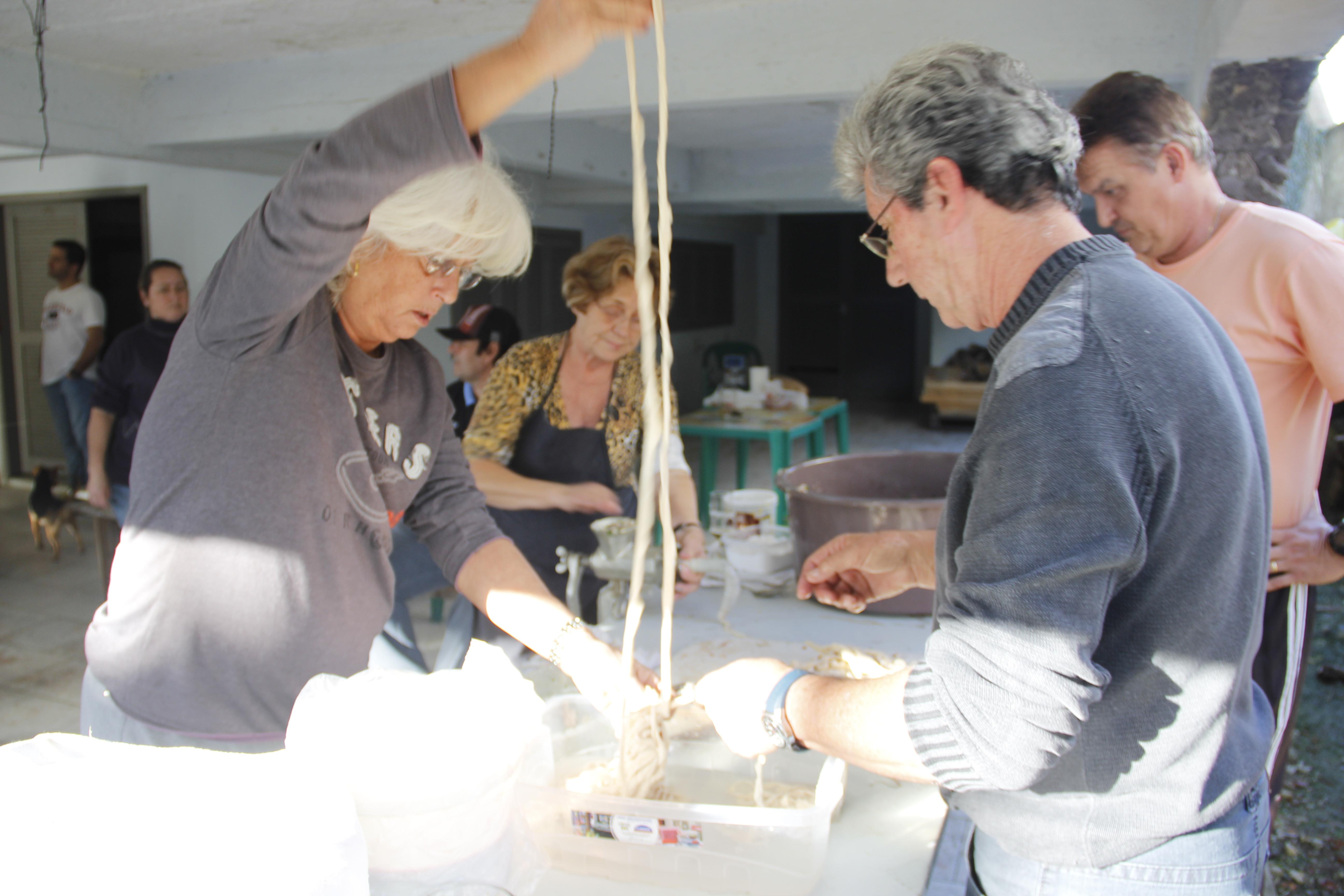 Preparando as tripas para serem enchidas e transformadas em maravilhosas morcilhas.