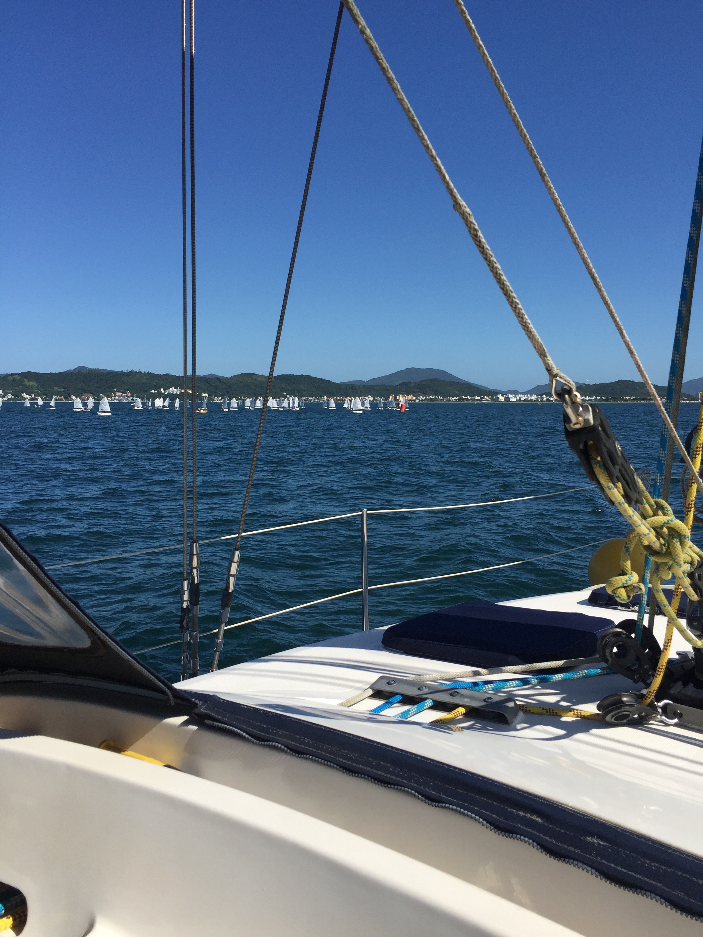 Ontem foi um dia espetacular. Ancoramos na Lagoinha – uma praia ao norte da Ilha de Santa Catarina. A água, apesar de gelada, estava de uma transparência indescritível e maravilhosa para banhos de mar. Na volta, o motor do Bubi apagou e tivemos que velejar de volta ao iateclube, com pouquíssimo vento. Mas foi muito divertido e sem estresse.