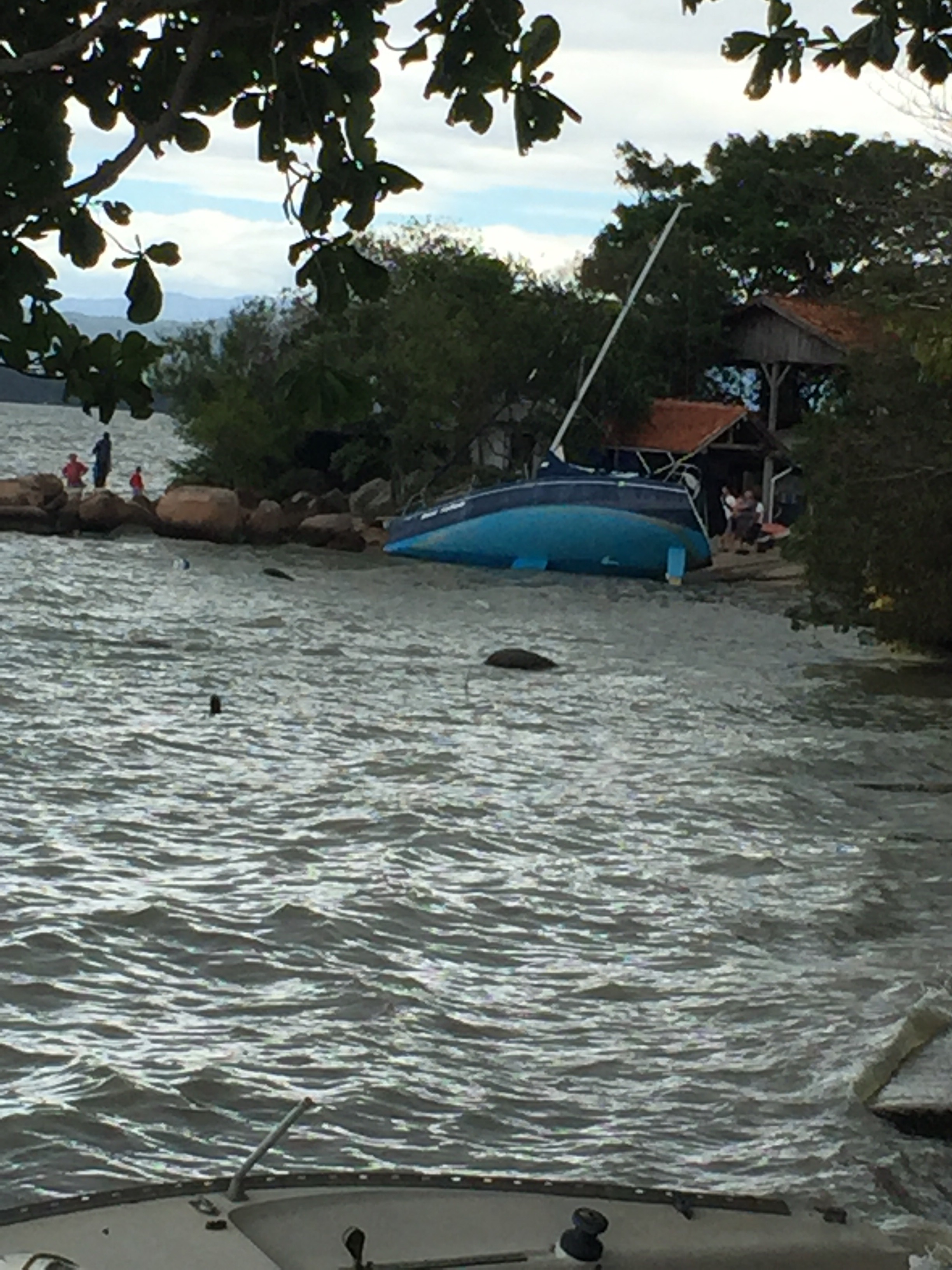 Na última semana, um ciclone atordoou toda a ilha de Santa Catarina, com ventos de mais de 65 nós. Floripa ficou sem luz, algumas regiões por mais de quatro dias. Vários barcos foram arrastados para a terra, alguns para o fundo do mar. O Bubi, ancorado no trapiche do Iate Clube, teve um dos cabos da proa arrancado do píer e bateu no veleiro do lado, mas sofreu apenas pequenos aranhões no costado.