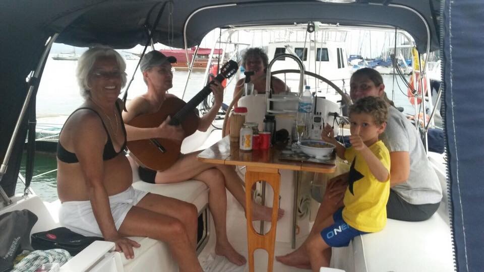 Depois de apresentarmos seu camarote em nossa casinha flutuante, ficamos no cock-pit comendo queijos e bebendo vinho, seguido de uma massa a quatro queijos.